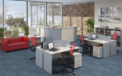 IMAGO предлагает широкий выбор элементов для организации рабочего пространства: рабочие столы (компактные, большие, угловые, эргономичные), тумбы, шкафы, переговорные столы, приставки, экраны и стойки ресепшн. Это универсальная мебель для персонала, которая подходит как для отдельных рабочих мест, так и для создания целых зон в офисе.